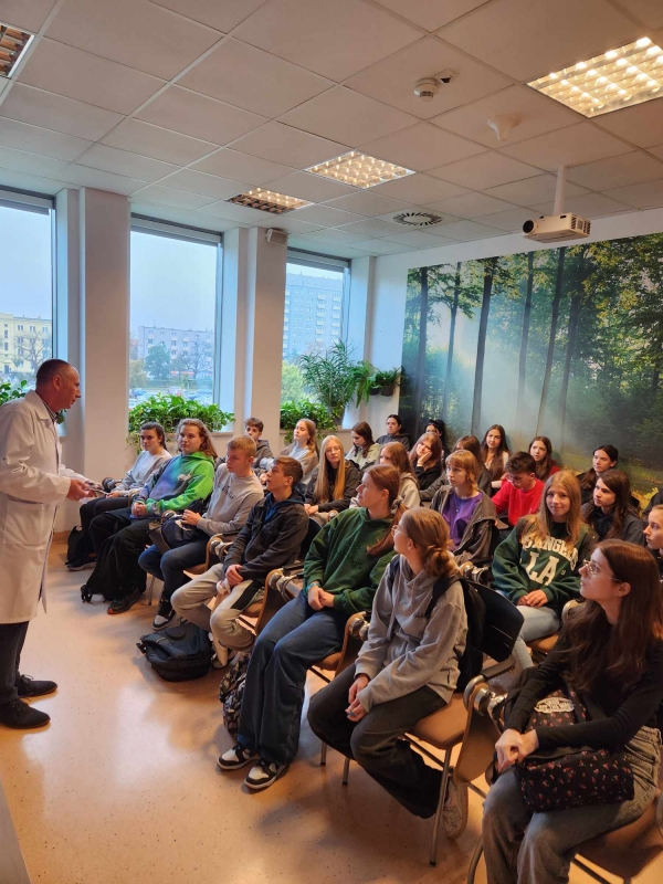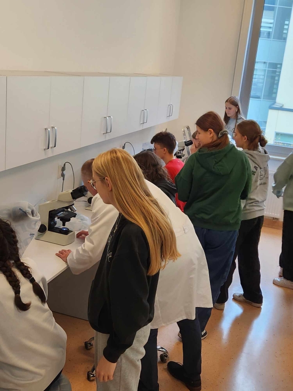 W dniach 26.10. i 30.11.2023r. uczniowie III Liceum Ogólnokształcącego w Gorzowie Wielkopolskim wraz z opiekunami uczestniczyli w zajęciach warsztatowych pt. "Barwne reakcje cukrów" oraz "Układ immunologiczny pod mikroskopem" zorganizowanych przez pracowników Zakładu Immunobiologii - dr Patrycję Talarską, dr Artura Kostrzewę i dr hab. Jakuba Żurawskiego.